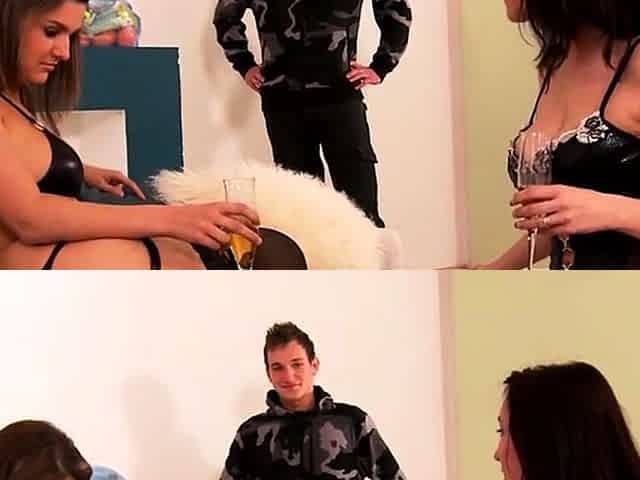 Femdom fetish mistresses fuck bdsm loser with strapon