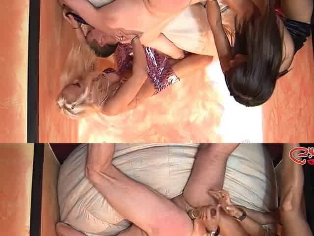 Blonde gay dude enjoys while being pegged by sluts Ellen and Linda