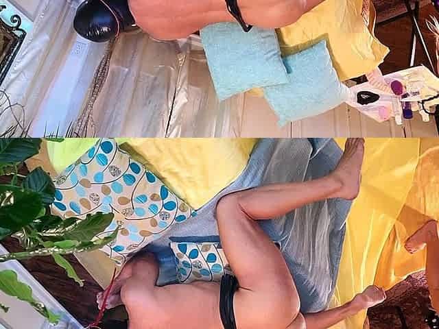 Unexpected anal orgasm during prostate pegging - she finds the perfect spot!