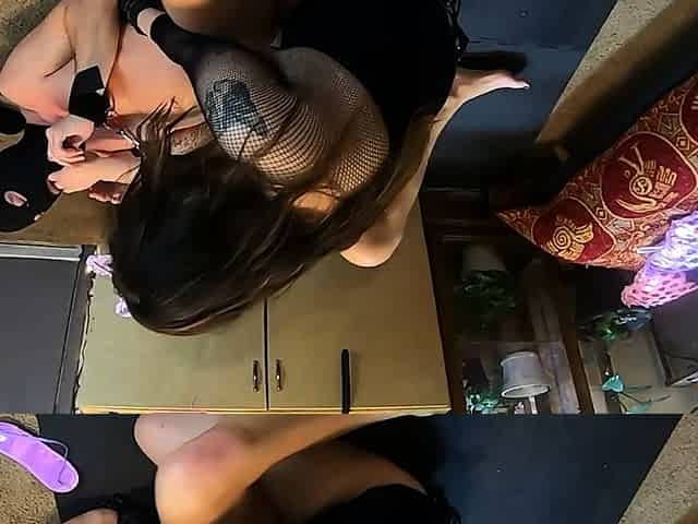 Sub thrall worships Succubus slavemaster, gives 'em head, and gets pegged senseless (13min cut of 37min)