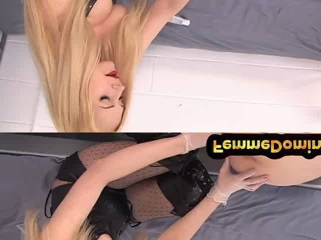 BDSM pegging domina fingers her sub in her hospital