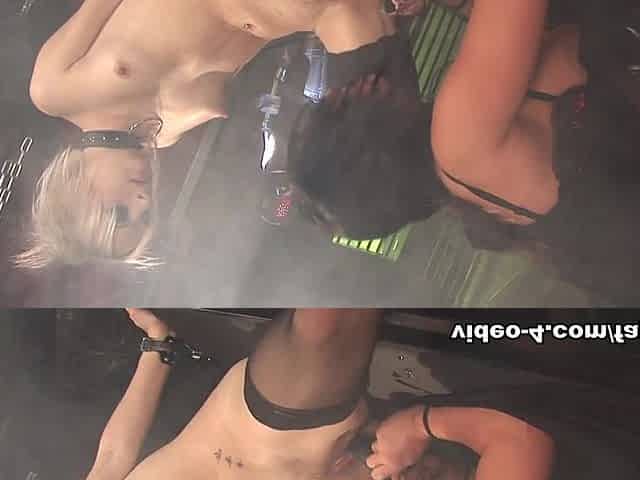Femdom fetish mistresses fuck bdsm loser with strapon