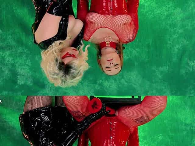 Sensual lesbian tease with a strap-on - kinky rubber play with latex girls