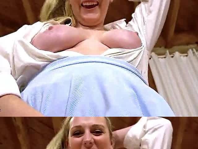 Blonde MILF Amy Douxxx uses her huge pink strap-on on her slave's tight ass
