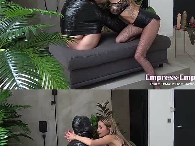 Femdom fetish mistresses fuck bdsm loser with strapon