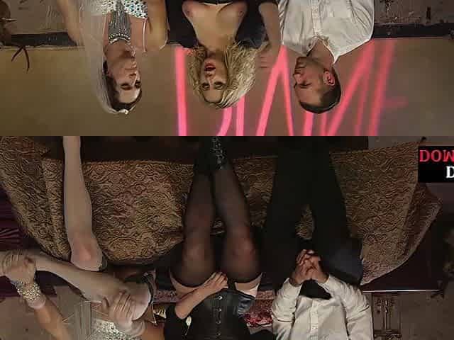 Femdom fetish mistresses fuck bdsm loser with strapon