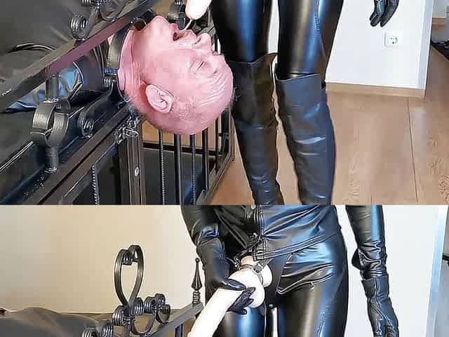 Femdom latex strap-on video - rude play!