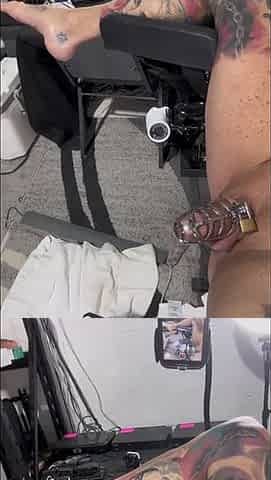 Strap on Stories-pegging - Gyno Chair Slut Puppet Caged & Slut Hole Pumped Until He Erupts. Side POV