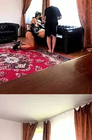 Striking side piece at ball gagged video