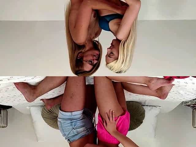 See this slim large tit blondie lesbian sweetheart screwing her roommate with ding-dong toy