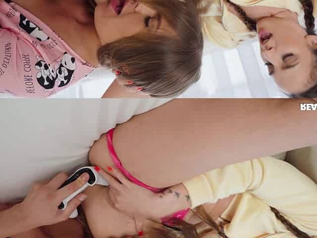 lesbo teens bang their booty with a vibrator