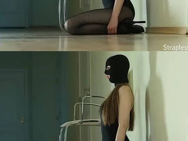 Cute lesbian restrained for a kinky strapless dildo fucking by Straplez: Porn