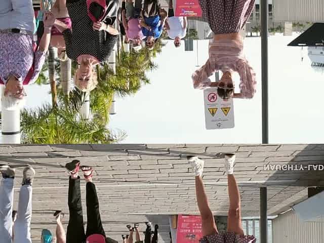 Woman seduces man at street casting Mirrorman