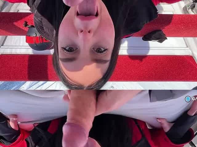 Brunette Hair gets picked up to suck
