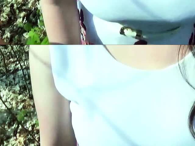 Street slut shows her young body while riding cock