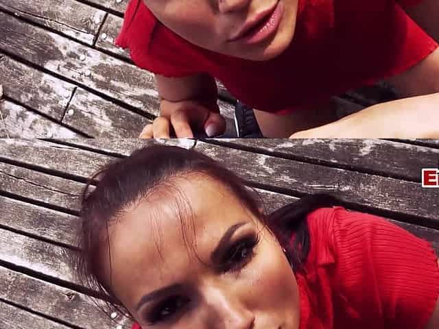 Brunette babe fucked on street and sucking big cock
