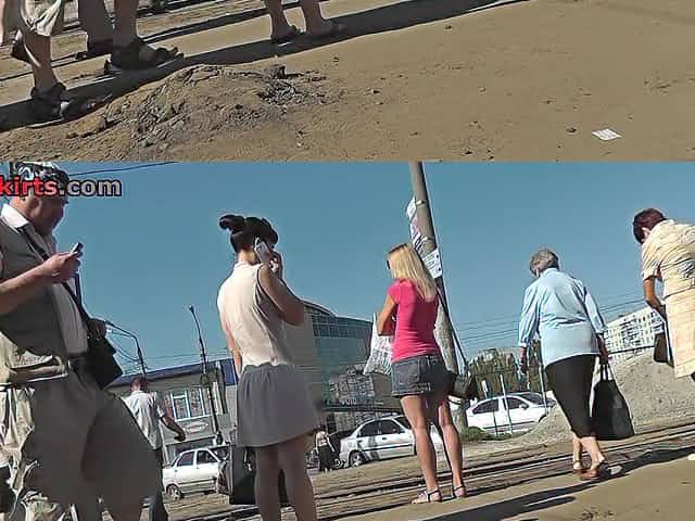 Goddesses shaking their ass in the street for a voyeur upskirt shot