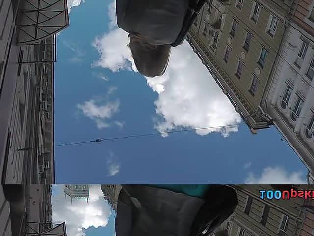 Upskirting voyeur filmed skinny ass of a brunette gal