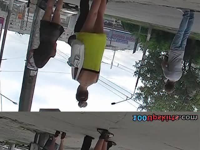 Street upskirt video with sexy babe in jeans short skirt