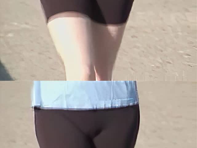 Fat ass voyeured on cam in the latex swimsuit shorts 07b