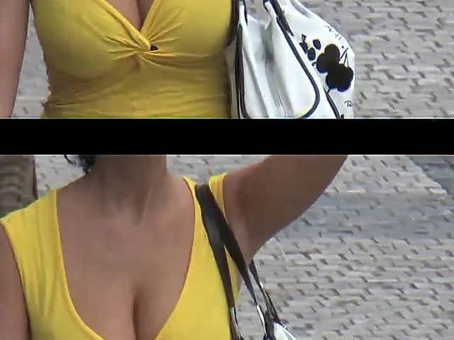 Two ample bottomed babes fall prey to an upskirt voyeur
