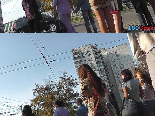 Sexy milf and thick brunette on candid voyeur upskirt video