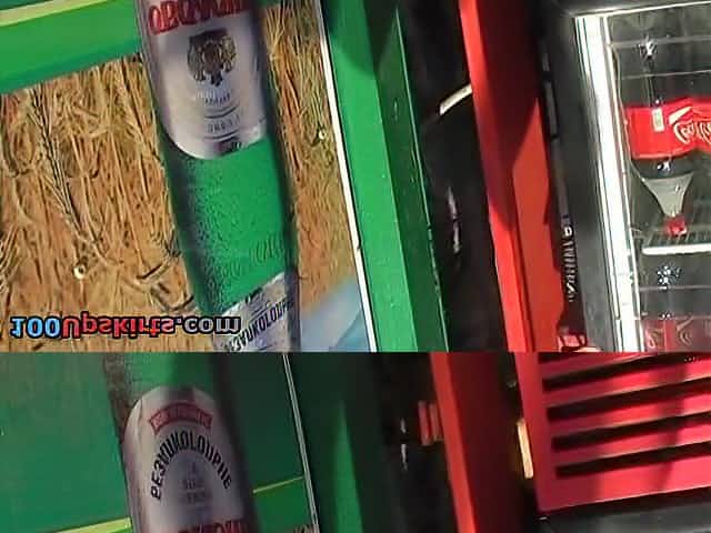 Blonde girl bending over for her backpack caught on spy cam