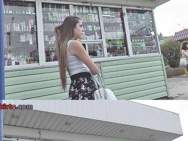 Skinny babe wears mini skirt in the voyeur upskirt vid