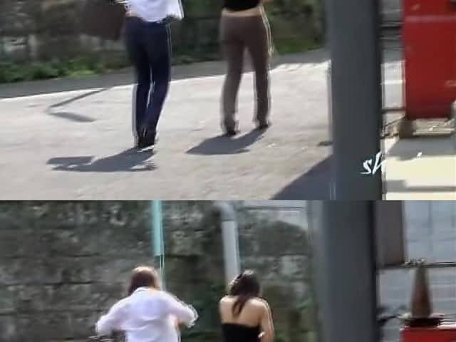 Two tight white nice asses in slim jeans walking in a voyur porno