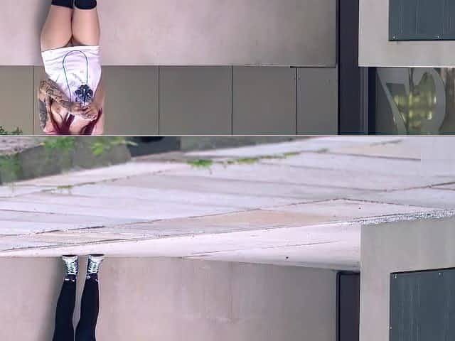 Teen with glasses shows her pussy on the street
