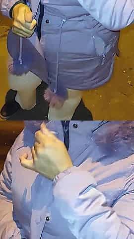 One hour of service or 2 rounds, my love! Street prostitute swallows sperm from cock rubber.