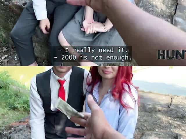 HUNT4K. Whore with priceless firm titties is screwing with a stranger in front of her naive BF