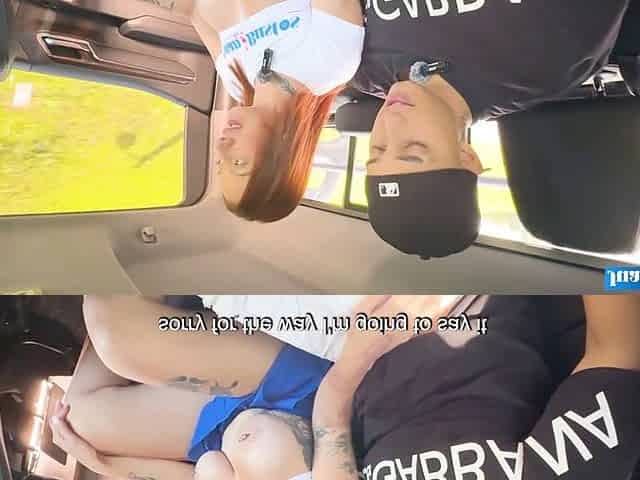 I touch her feet and butt in the centre of the street during the time that this babe takes a break in my car