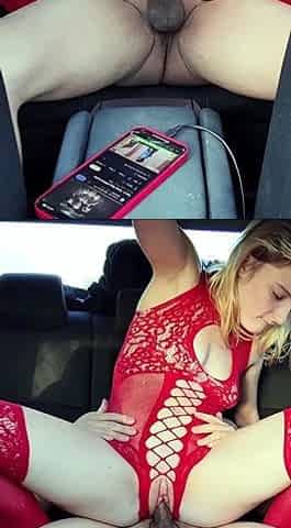 One hand on the wheel, the other on the meatstick! Wild outdoor action
