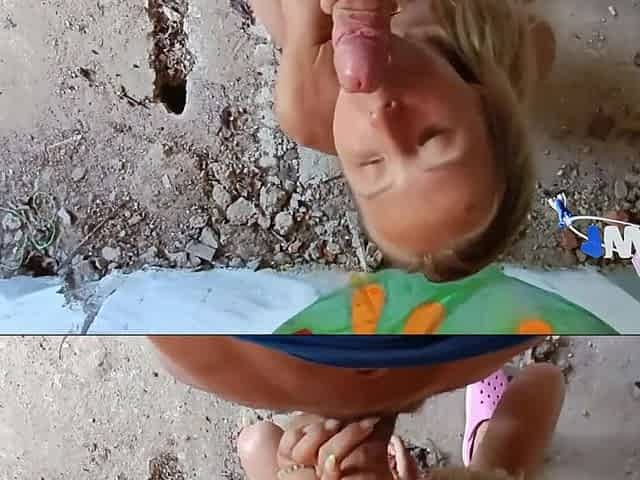 Half-bare Blond Gave a Oral and Let Herself Be Banged Right on the Street