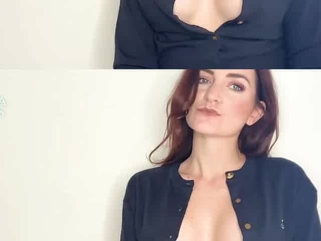 Julia V Earth makes striptease. Red lips, high heels, sexy dress and lingerie.
