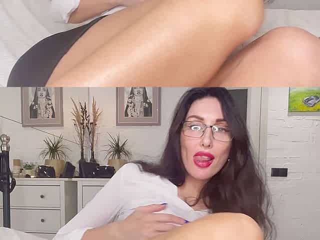 Horny teacher in pantyhose sensual masturbates pussy and orgasm