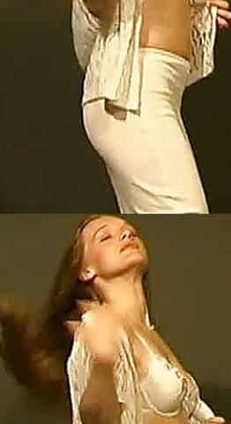 Slim college girl strips Slim babe moves gracefully and takes off her white dress and underwear. Flexible college girl