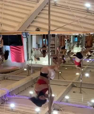 Mature pornstar stripper Allura Jenson dancing around the pole - Big ass solo