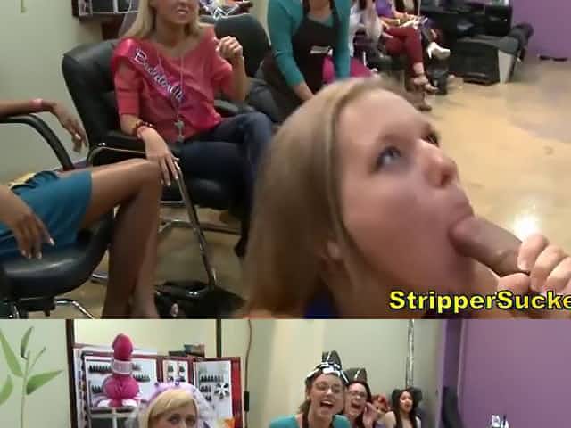 Dirty fucking sluts sucking on stripper cocks at local hair salon