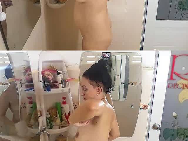 Do u want to screw a sweetheart in the shower? Admirable lady masturbates in shower room. web camera 1-5