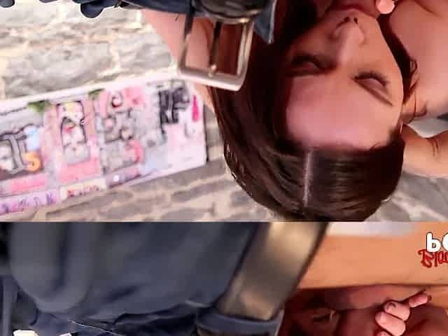 Blonde bombshell Fanny Bell gives a mind-blowing blowjob