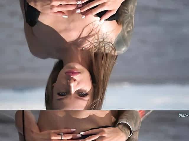 Yacht girl with a perfect body is touching her wet shaved pussy