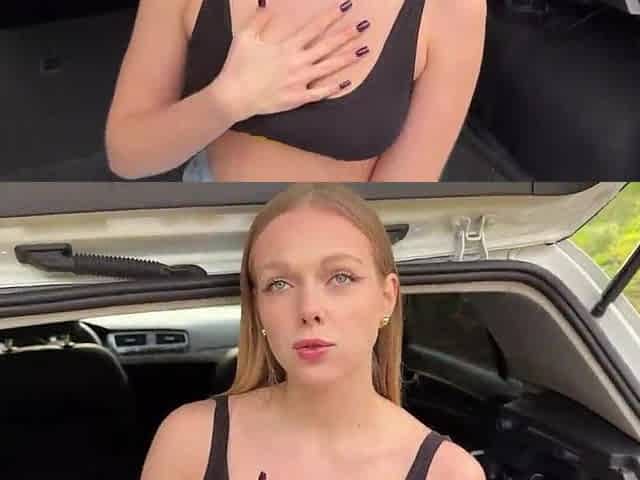 Sexy Blonde Babe With Big Boobs Strips Bra