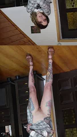 Superb Blonde Chick with an Amazing Tattooed Figure Licking Her Stockings and High Heels