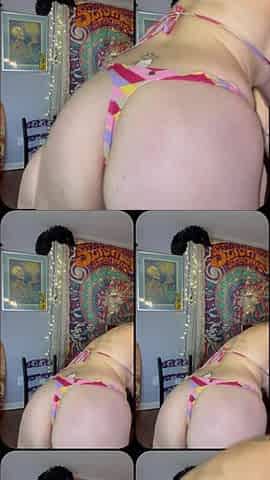 Chubby BBW with pink hairs April Flores touches her crack