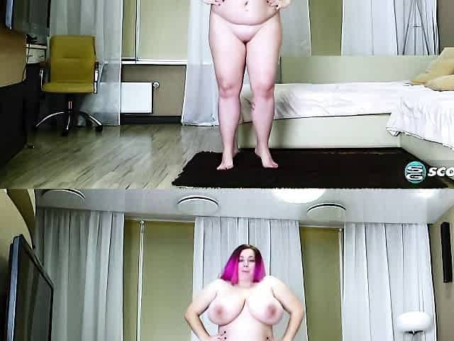 Blue-Haired Babe Strips Amazing Amateur Boobs