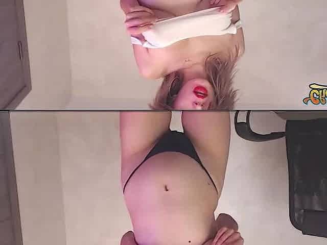 Busty cock tugging teen slut jerks off
