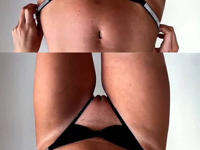 Skinny girl Realyourmimi shows off sparkly rhinestone g-string panties in sexy try-on haul