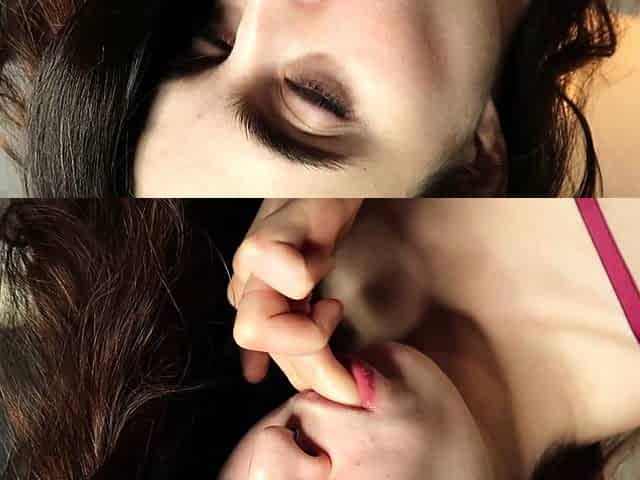 Brown-haired hottie Maria Lee is touching her wet shaved pussy